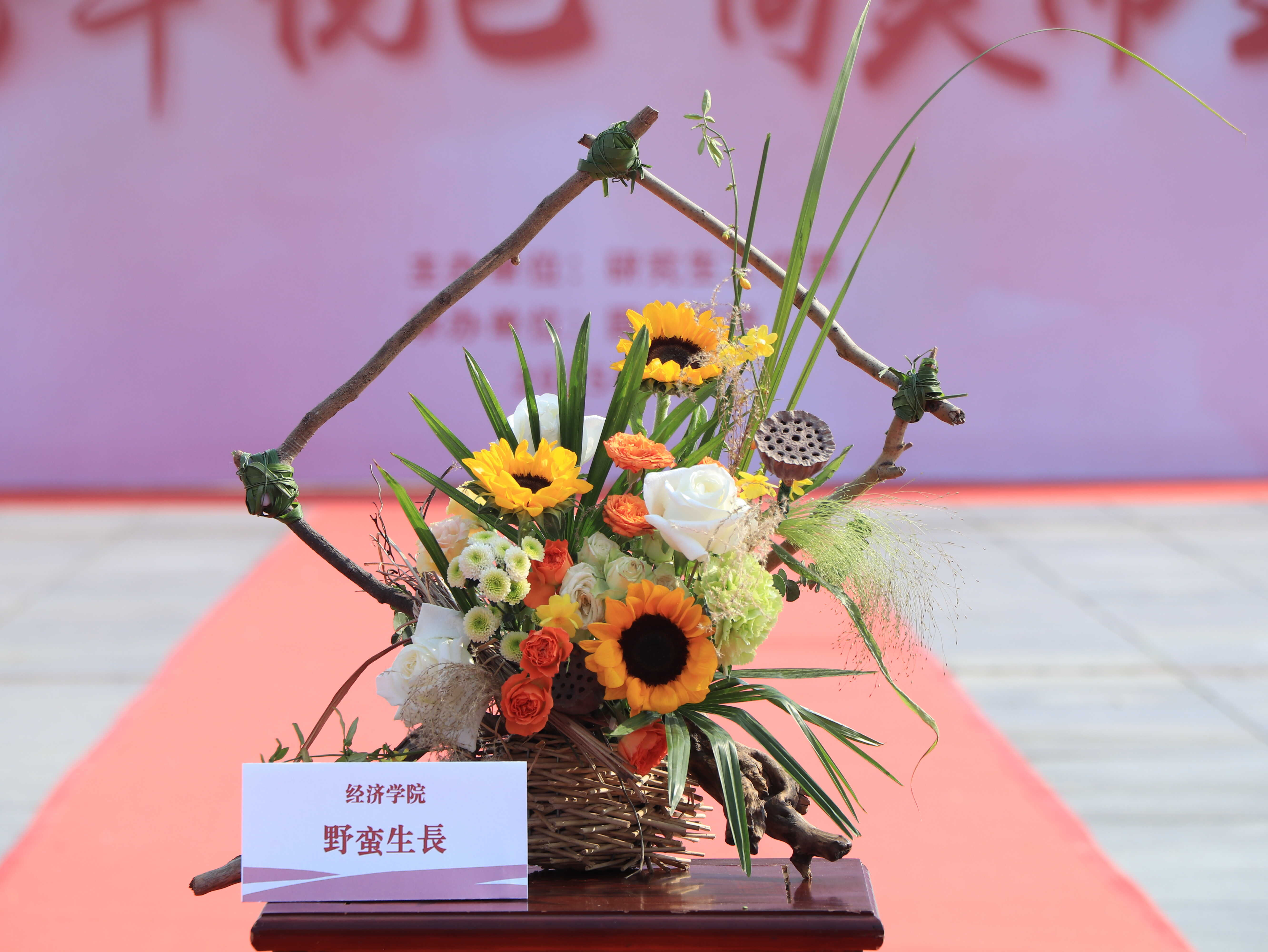 “雅颂芳华”插花大赛中,23支队伍参赛。各组选手发挥想象和创意,以花为诗、以器为画,打造独具匠心的花艺作品,作品搭配和谐、寓意深远,对于女性力量的阐述令人眼前一亮,展示了研究生们对插花艺术的独到见解。经综合评审,插花作品《坚韧》获一等奖,作品《芳华》和《芳华拾韵》获二等奖,作品《巾帼绽芳华》、《野蛮生长》和《硕果累累》获三等奖。