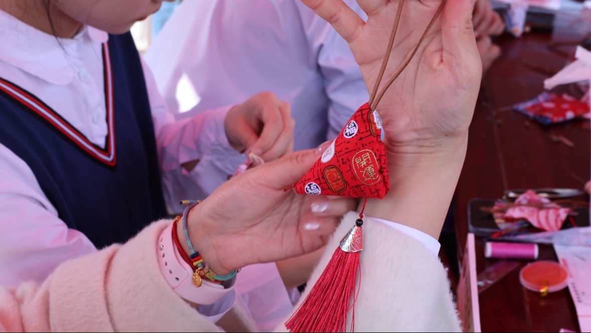 在“集市”行乐”游园会中,同学们用镜头定格身姿,映照青春倩影;在踢毽子比拼中,展现女性的灵巧与韵律之美;“晒”出心愿活动,留下暖心的话语,传递积极能量;在制作团扇、香囊的指尖艺术中,诠释自然之美。现场热闹非凡,洋溢着青春的热情。