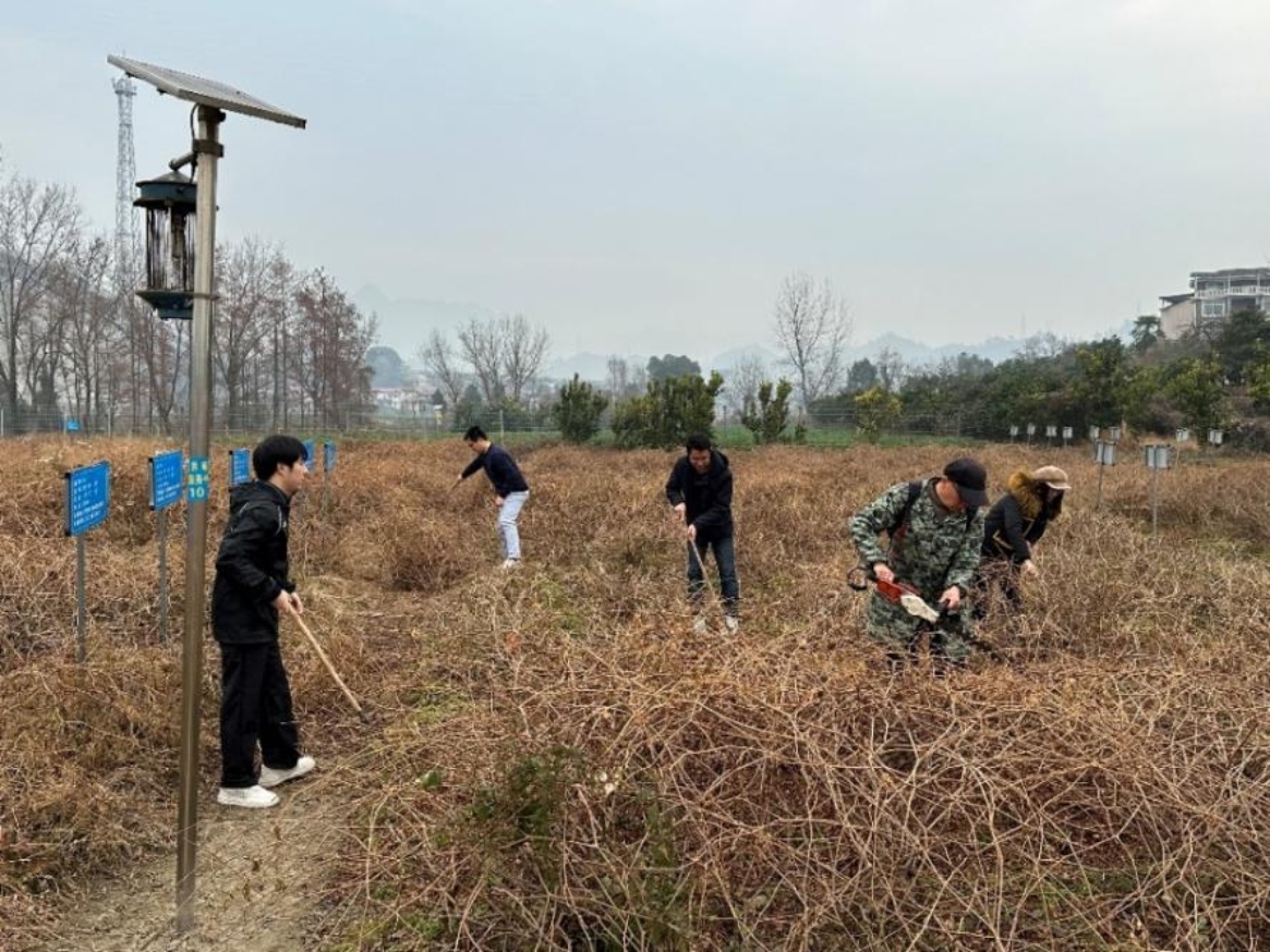 1月14日至15日,植物保护学院易图永教授带领园艺植物病虫害防治支农小队,前往张家界莓茶种植基地,帮助农户开展冬季清园工作。团队成员手把手指导农户清理病枝、枯叶和杂草并进行多种病害防治药剂的田间试验,提出高效、低毒、环保的防治方案。