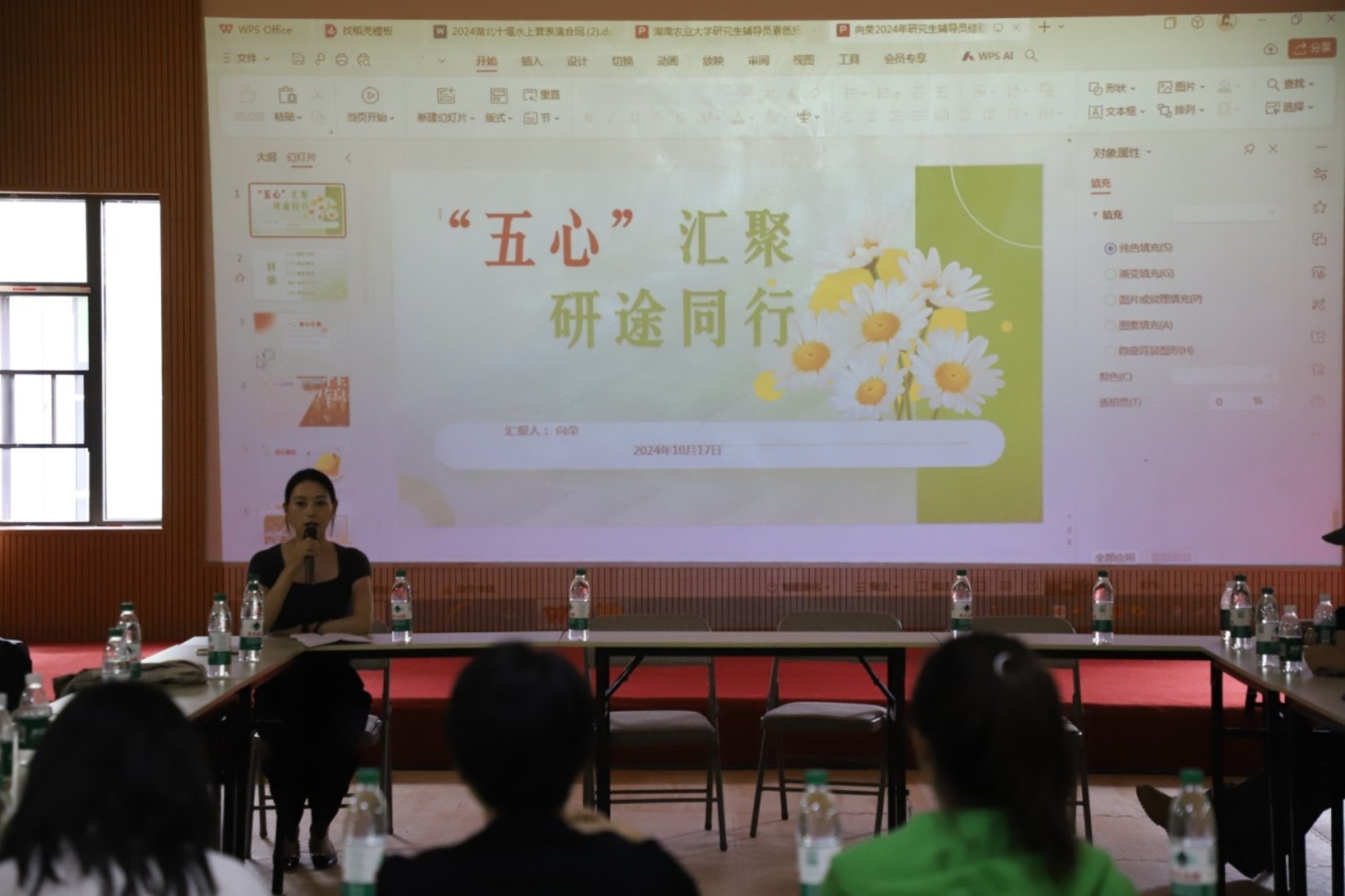 随后,队伍集合前往赤马湖户外素质拓展基地开展业务交流活动。资源学院研究生辅导员向荣结合自身工作实际,分享了“初心引领、用心服务、耐心陪伴、安心守护、恒心致远”的研究生思政教育工作经验。园艺学院研究生辅导员杨一鸣分享了学院以高质量党建引领高质量思政教育,打造具有鲜明园艺学科特色的党建品牌的优秀做法。在座老师表就研究生思政教育中的热点、难点问题进行了深入交流和分享,大家各抒己见,气氛热烈。