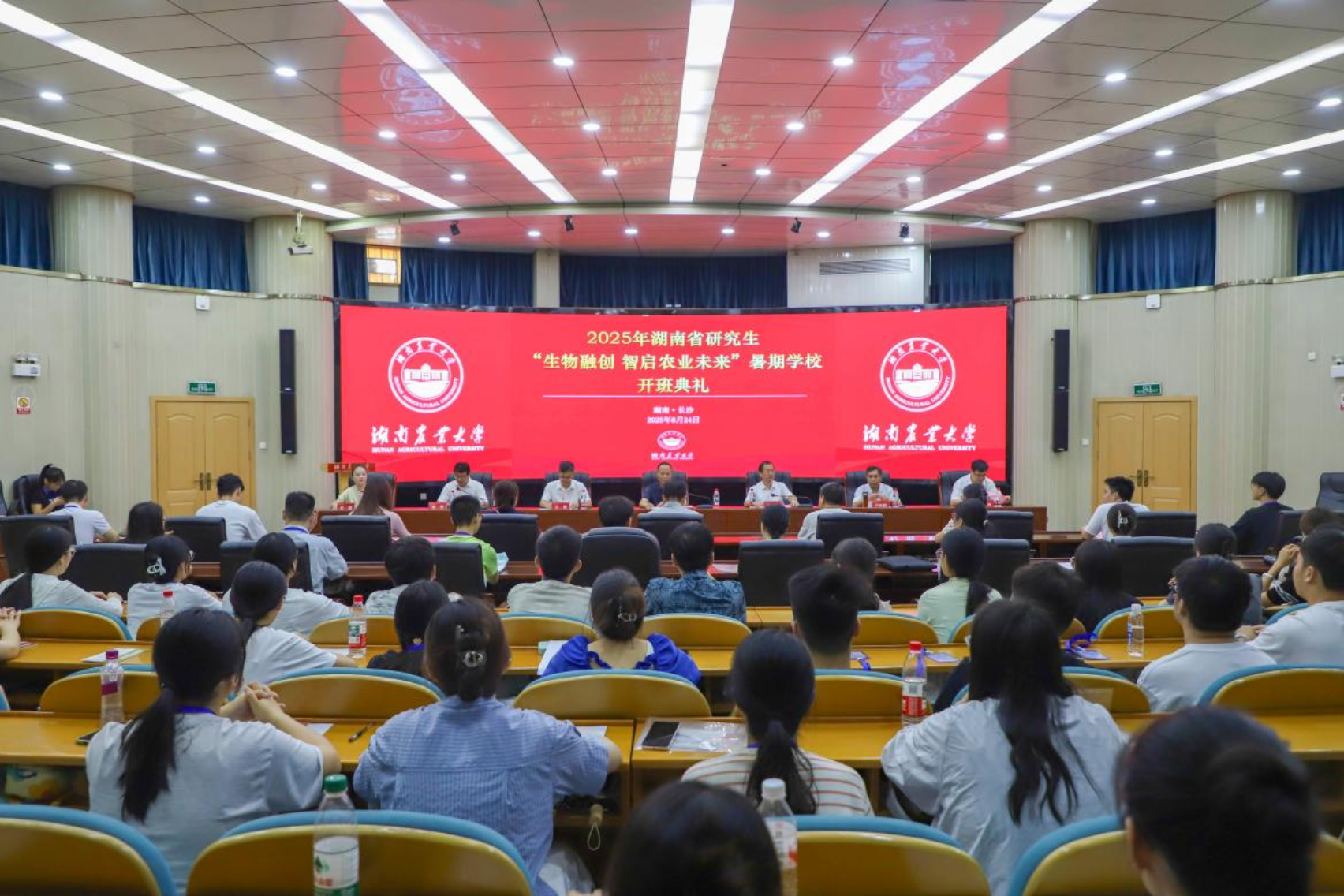 8月24日,由湖南省教育厅主办,我校研究生院、生物科学技术学院联合承办的2025年湖南省研究生“生物融创,智启农业未来”暑期学校开班典礼在我校生命科学楼国际会议厅举行。湖南省教育厅学位管理与研究生教育处处长刘梦清,我校党委委员、副校长谢方平,研究生院、生物科学技术学院相关负责人及教师代表,来自全国各大高校的100名学员参加开班典礼。