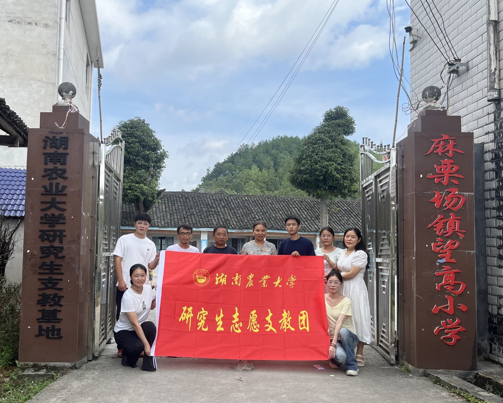 研究生工作部副部长龙小军陪同第七届研究生支教团进驻学校。当地政府为支教团举行庄重热烈的欢迎仪式,学校驻村工作队老师、当地镇村两级干部以及受援单位负责人参加座谈。当地政府及学校表示,湖南农业大学研究生支教团的到来不仅为当地基础教育注入了新鲜血液,更是高校赋能乡村教育、助力乡村振兴的生动实践。支教团成员表示,将以饱满的热情、认真的态度和扎实的作风投入工作,虚心向当地教师学习,努力做好学生成长的引路人和乡村教育的燃灯者,展现湘农学子的良好风貌,不负学校重托与期望。