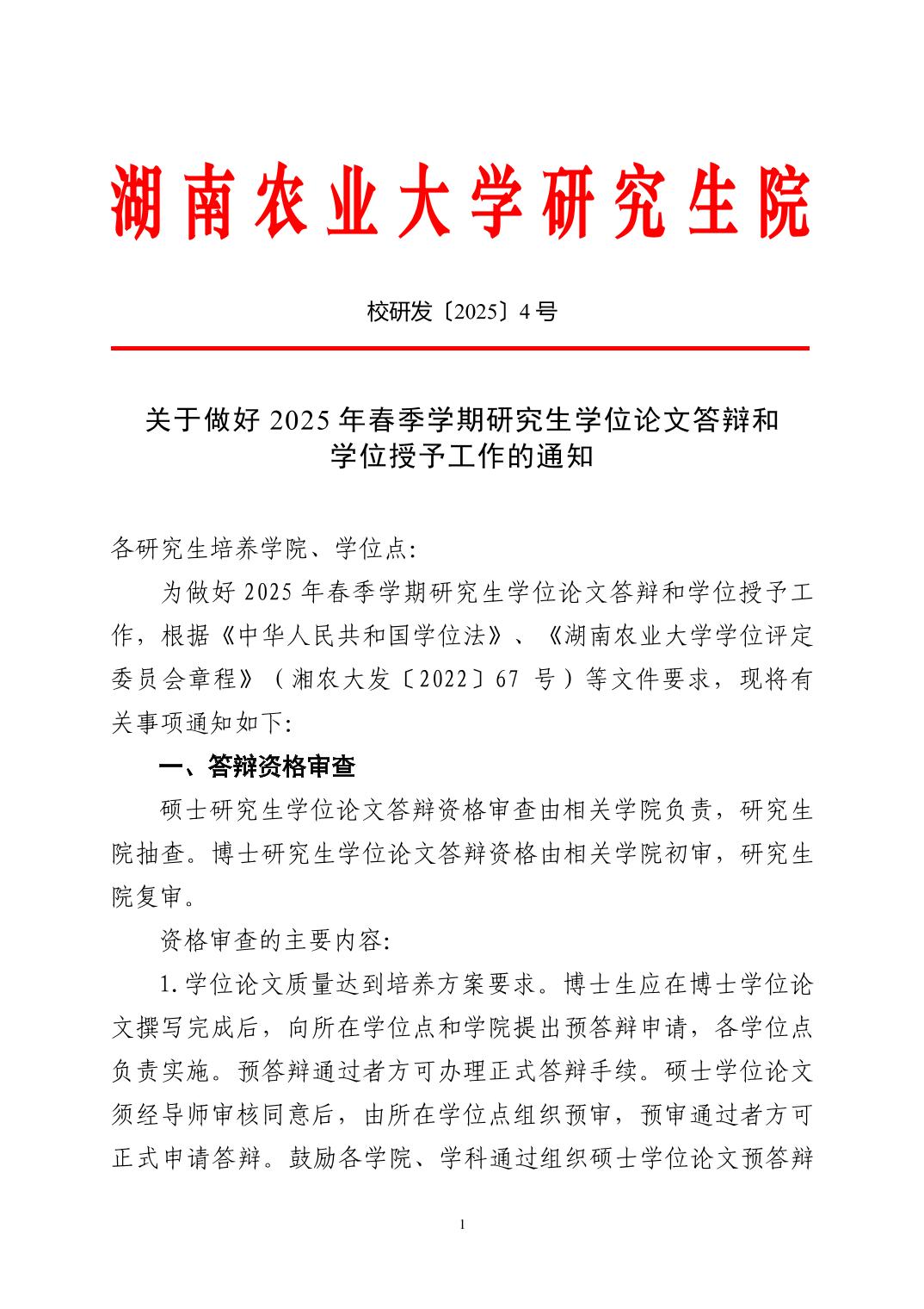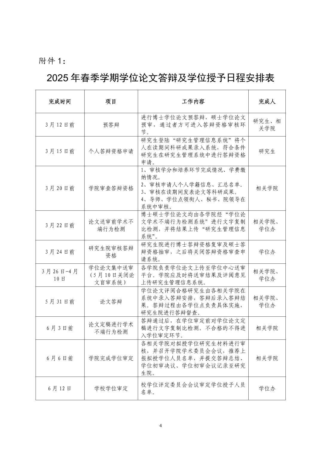 关于做好2025年春季学期研究生学位论文答辩和学位授予工作的通知