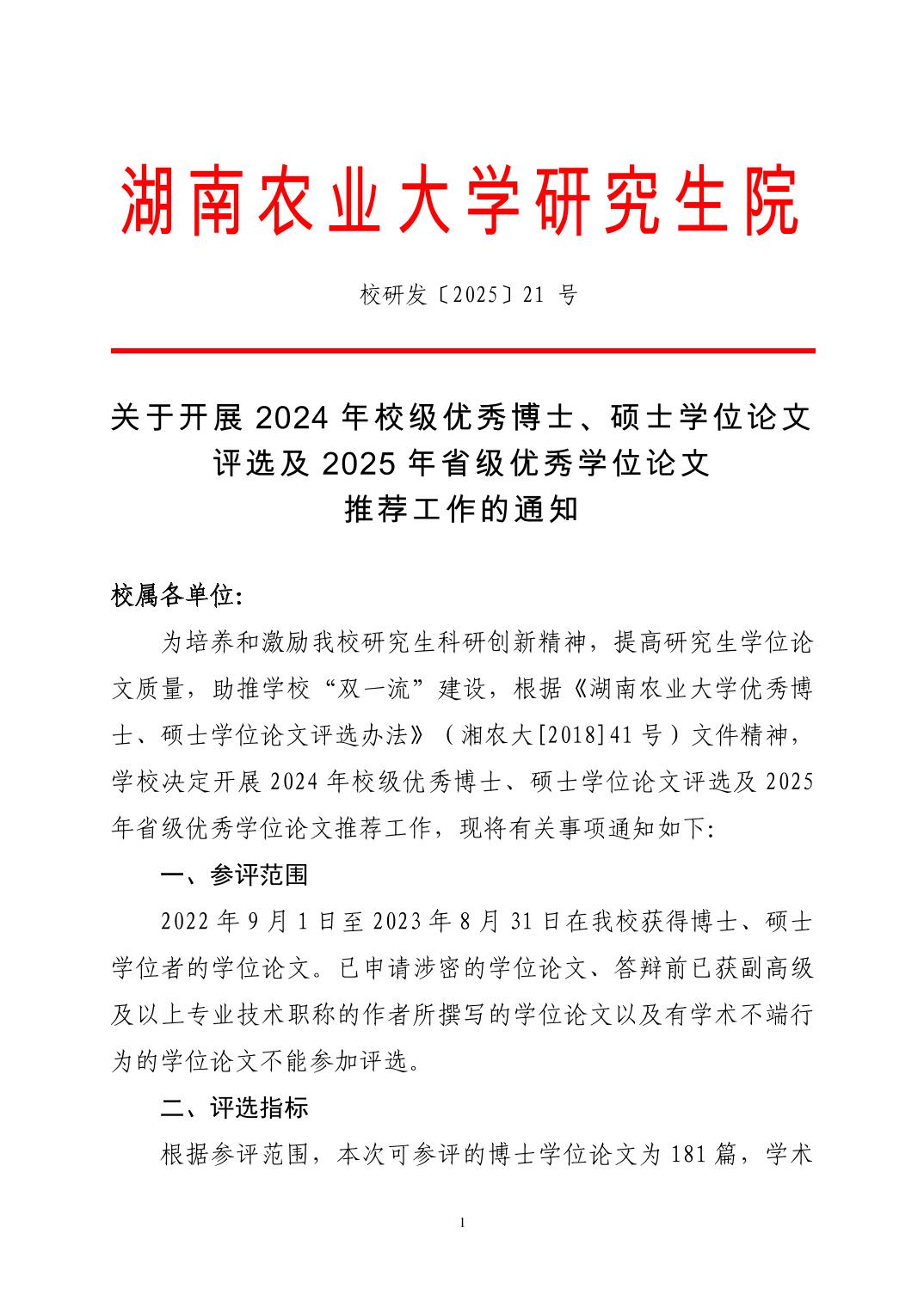 关于开展2024年校级优秀博士、硕士学位论文评选及2025年省级优秀学位论文推荐工作的通知